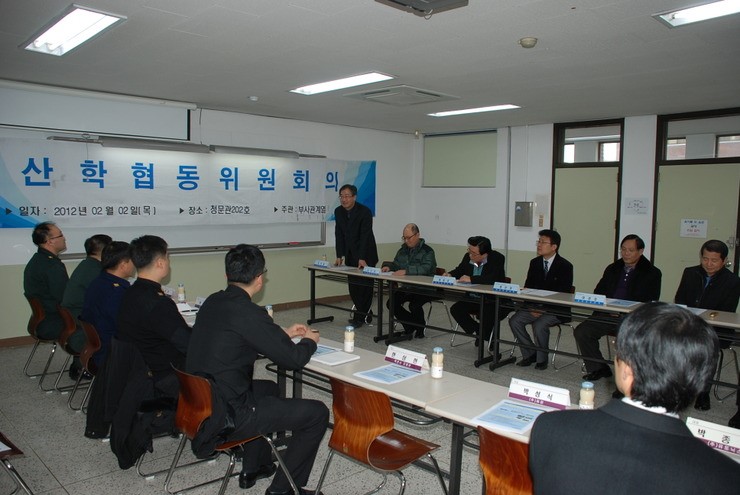 2012년 우리 부사관계열(부사관과) 교수님들과 각군 모병관님들, 산업체 인사분들을 모시고 군산학 협동위원회 회의를 개최했습니다.